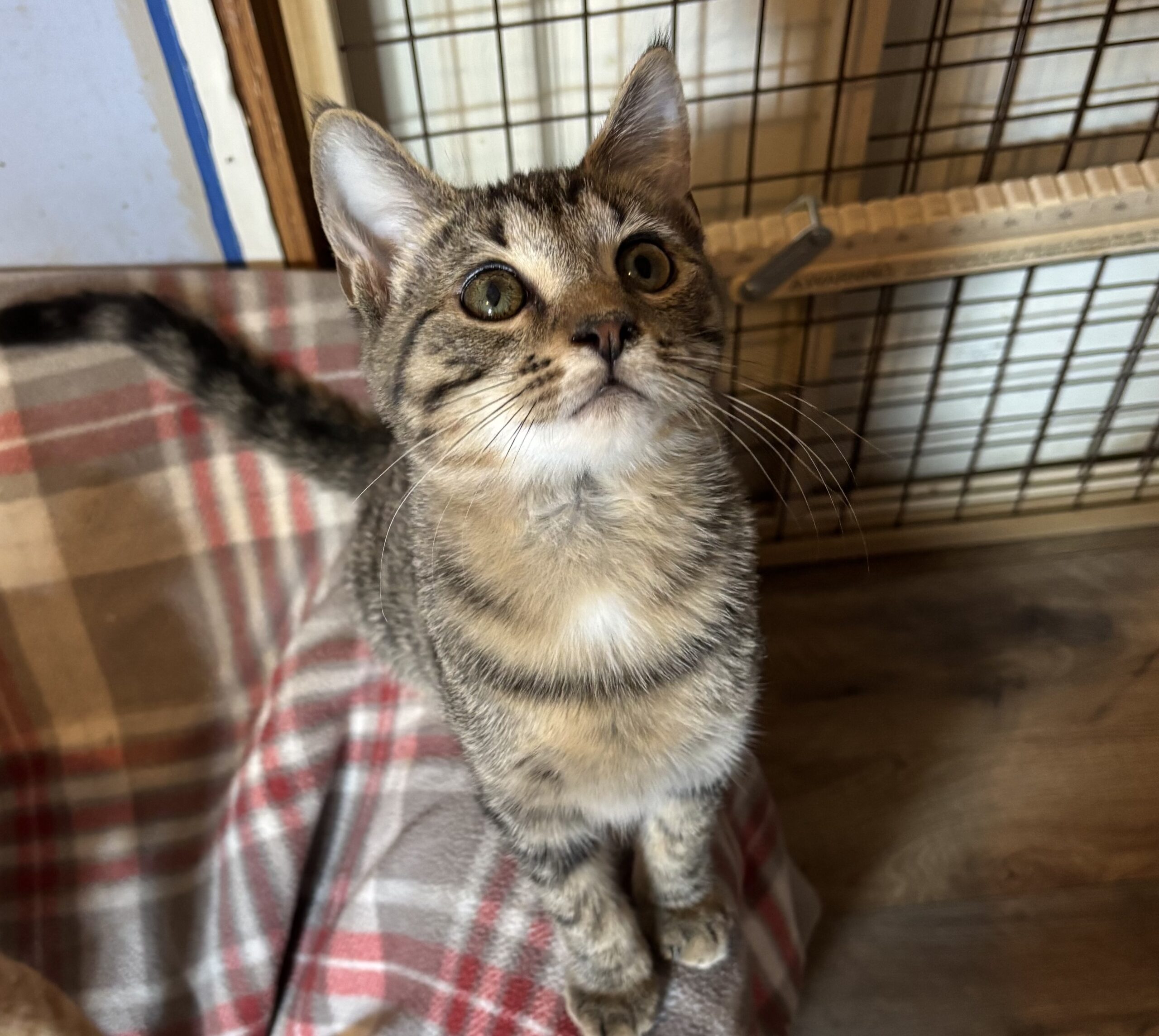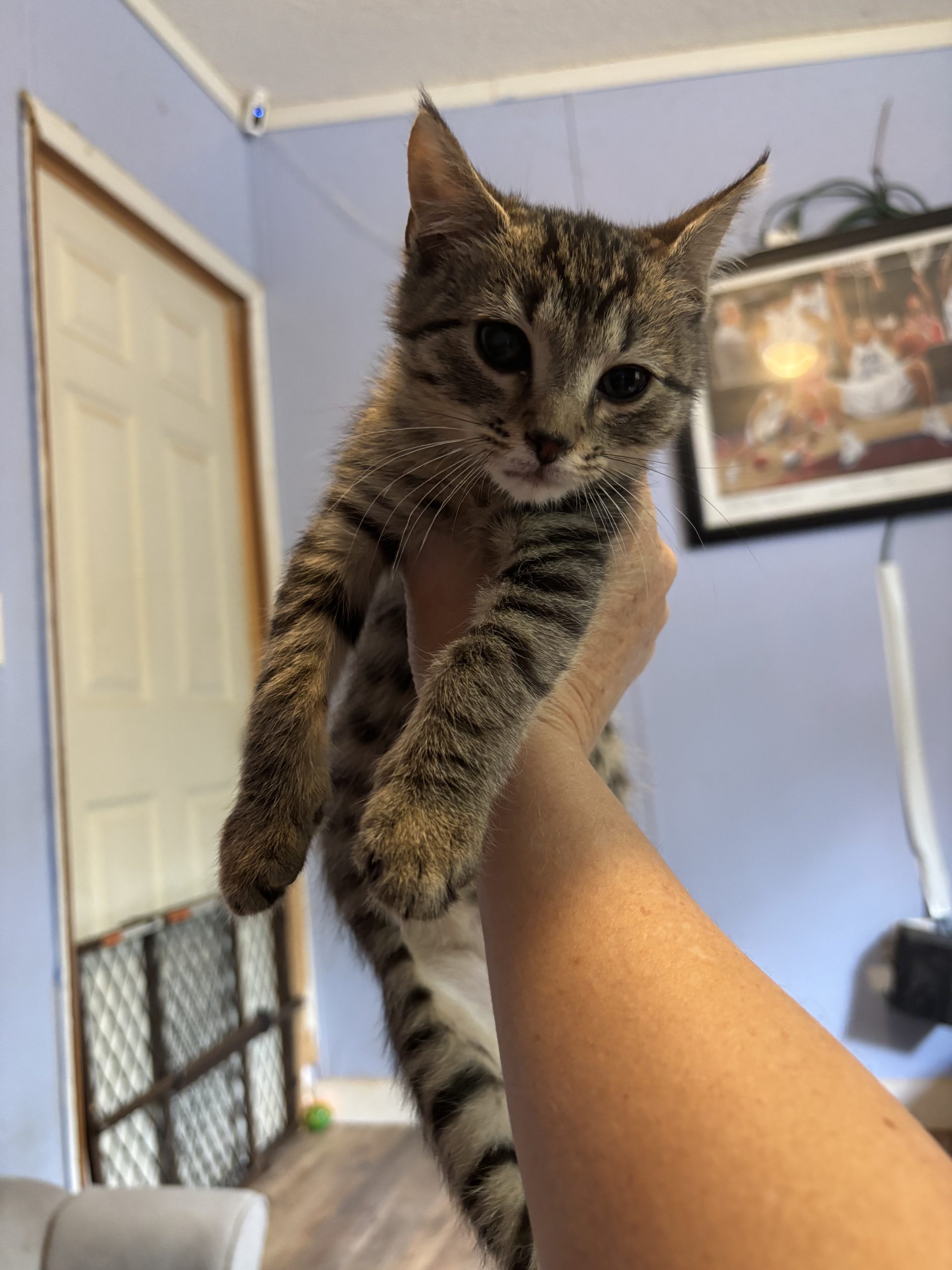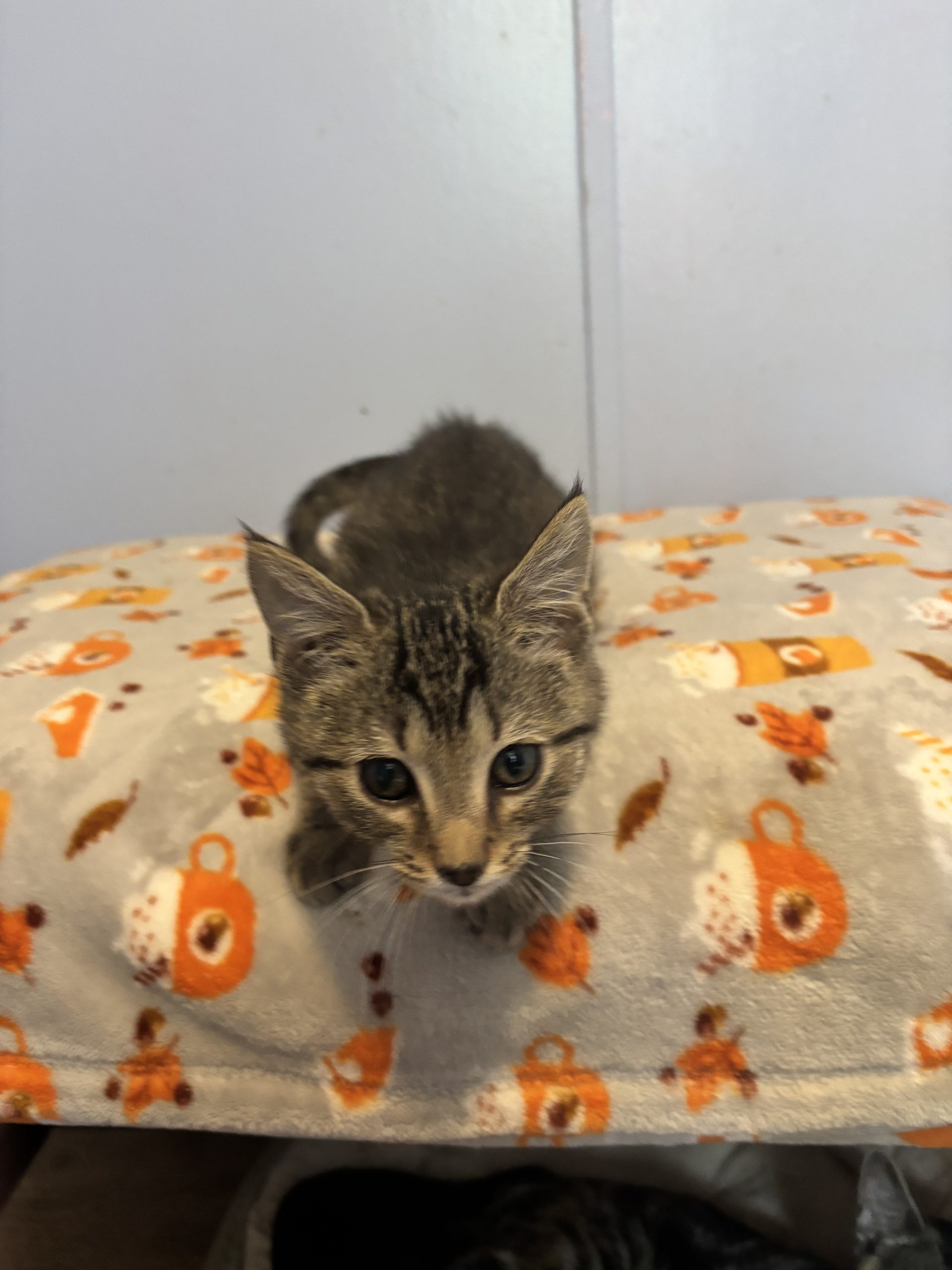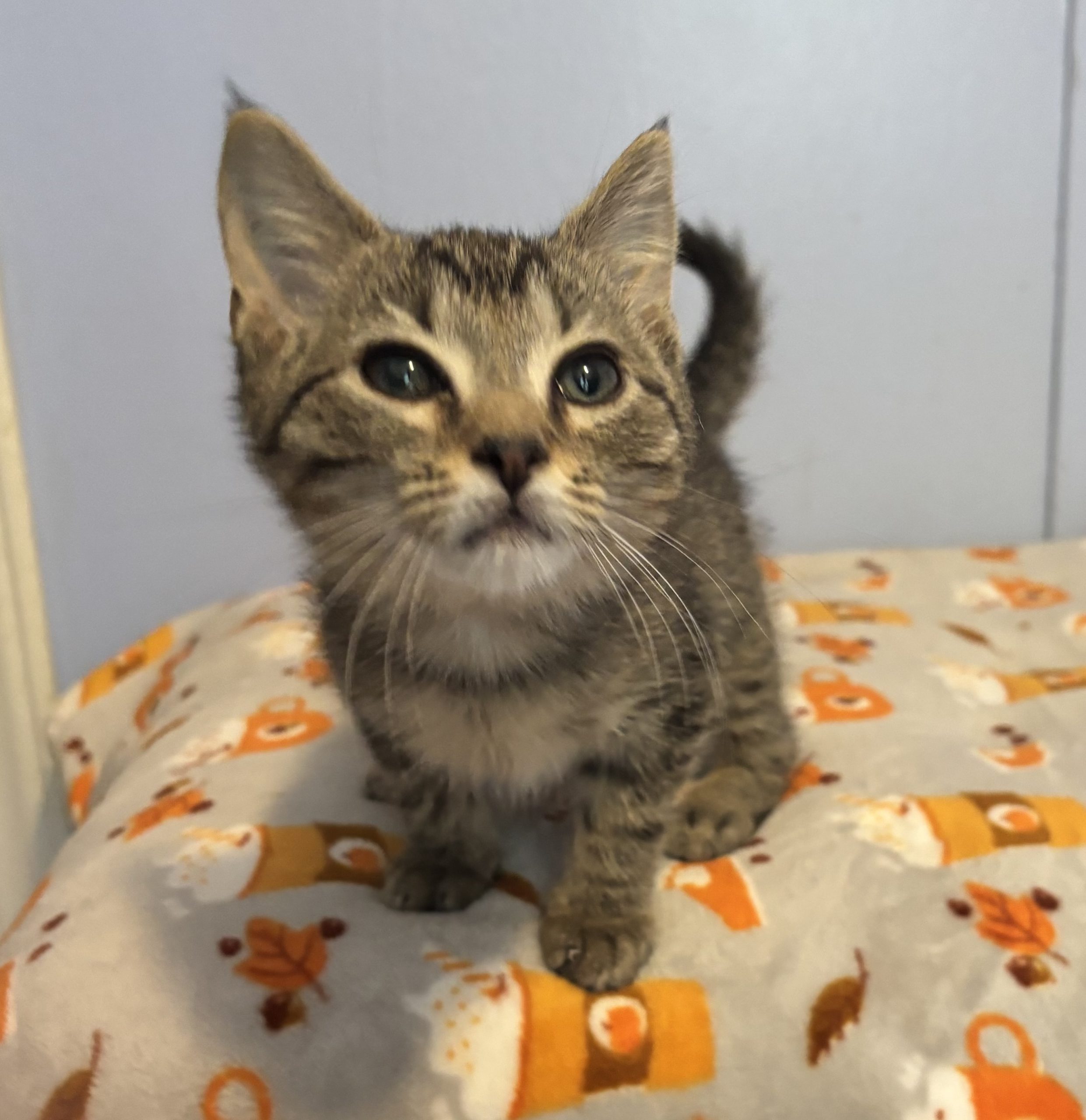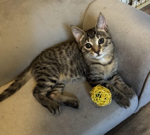 Billy is a bundle of energy, fun and cuteness! He’s about 8 weeks old, and was found living outside a few weeks ago. Come meet this fella and he’ll steal your heart! Billy will need to be adopted with another kitten or already have a playmate at home.
