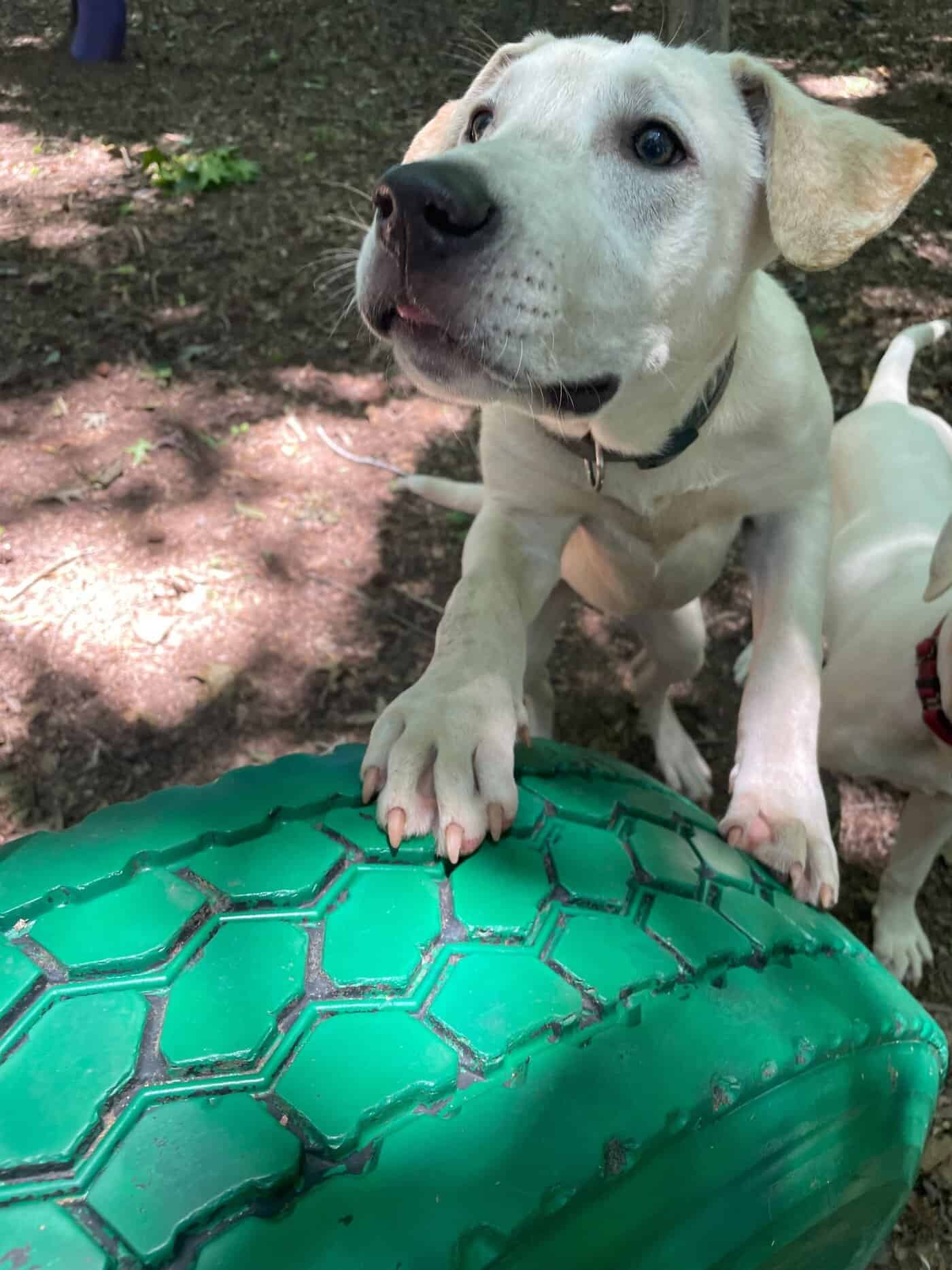 He loves romping around with Pearl, exploring the farm, and soaking up all the attention he can get. Like most pups his age, Boe is eager to learn and would thrive in a home that can help him grow with patience, structure, and lots of love.