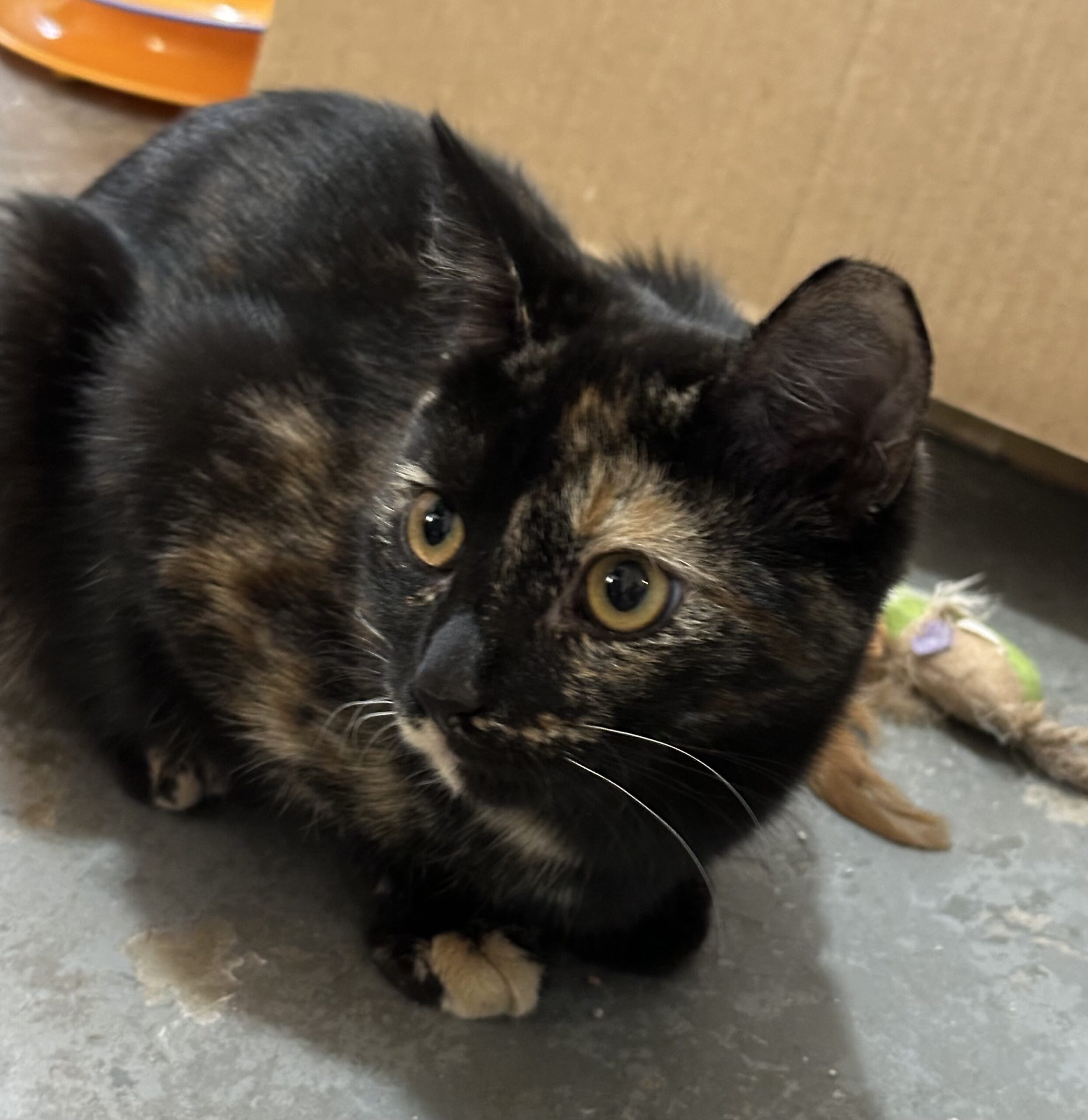 Fern is 6 months old (as of 10-12-25), and was found living outside with her 3 siblings.