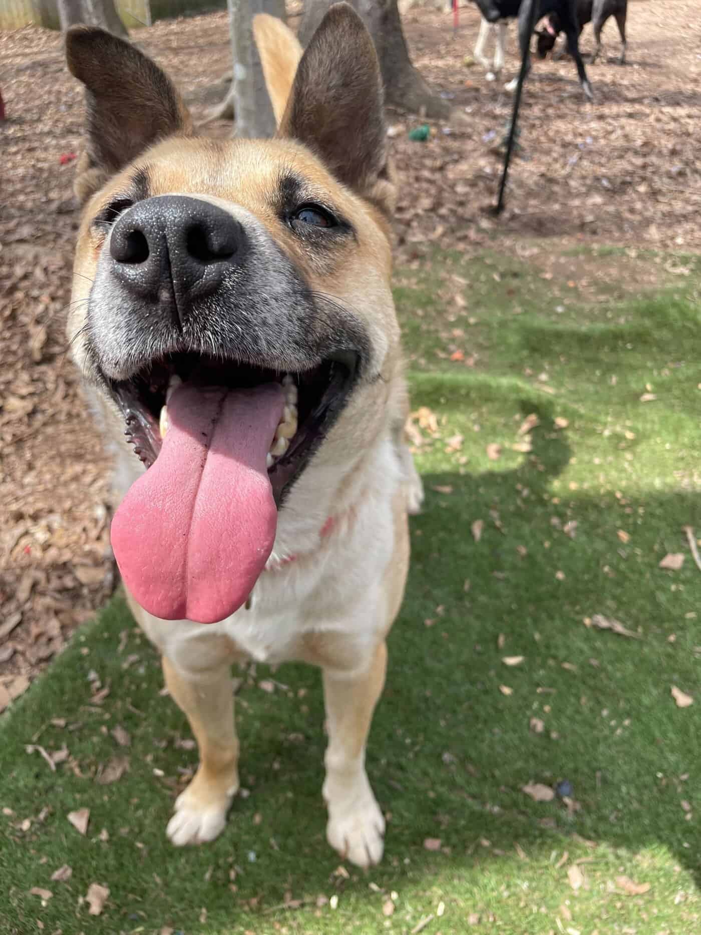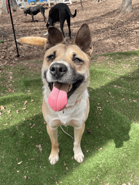 Hi! I’m Ginger! I’m a 2-year-old mixed breed rescued from a pretty terrible backyard situation. I absolutely love other dogs and it’s almost impossible to get a pic of me without one of my friends! Brandy, Susie, and I spend a lot of time cuddling, Panda is fun to play with, and I’m in love with Angus! The nice people here think I’d do best in a home with another puppy friend to teach me more about life as an inside doggo!