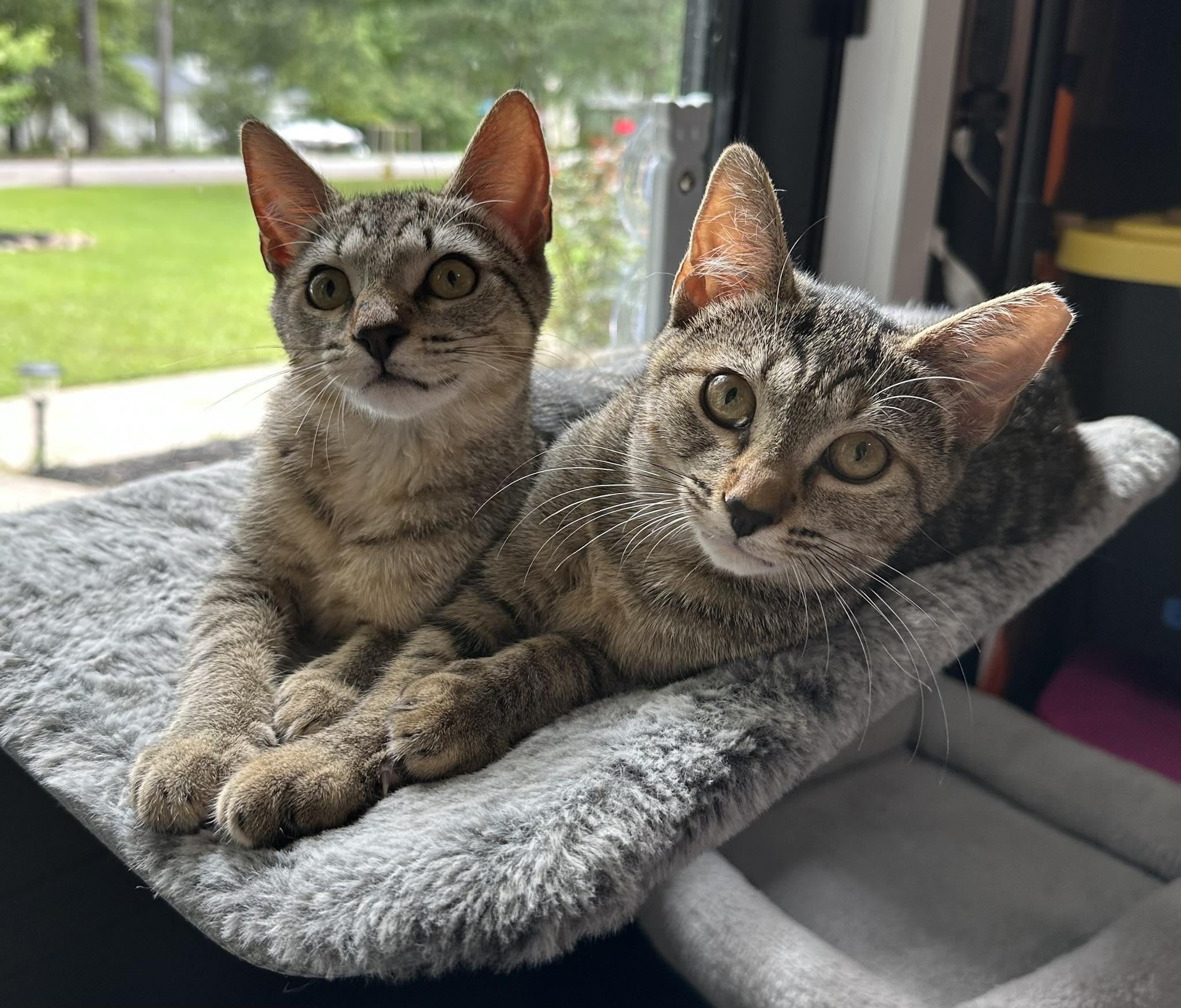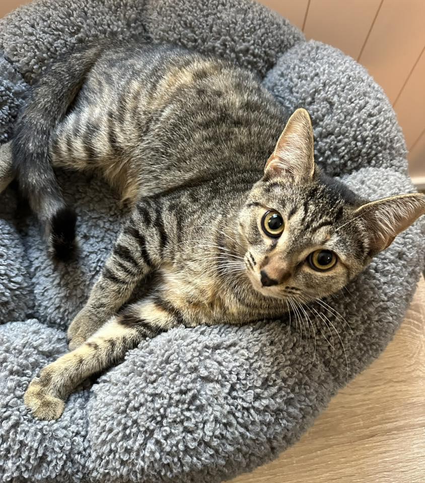 Hazel will bring love to any home. She’s calm, smart and loves affection in quiet moments. She will make a wonderful loyal companion! Hazel was found surviving outside with her three sisters. Two of her sisters are still available if you are interested in adopting two sweethearts! One of the pictures shows Hazel with her sister Penny.