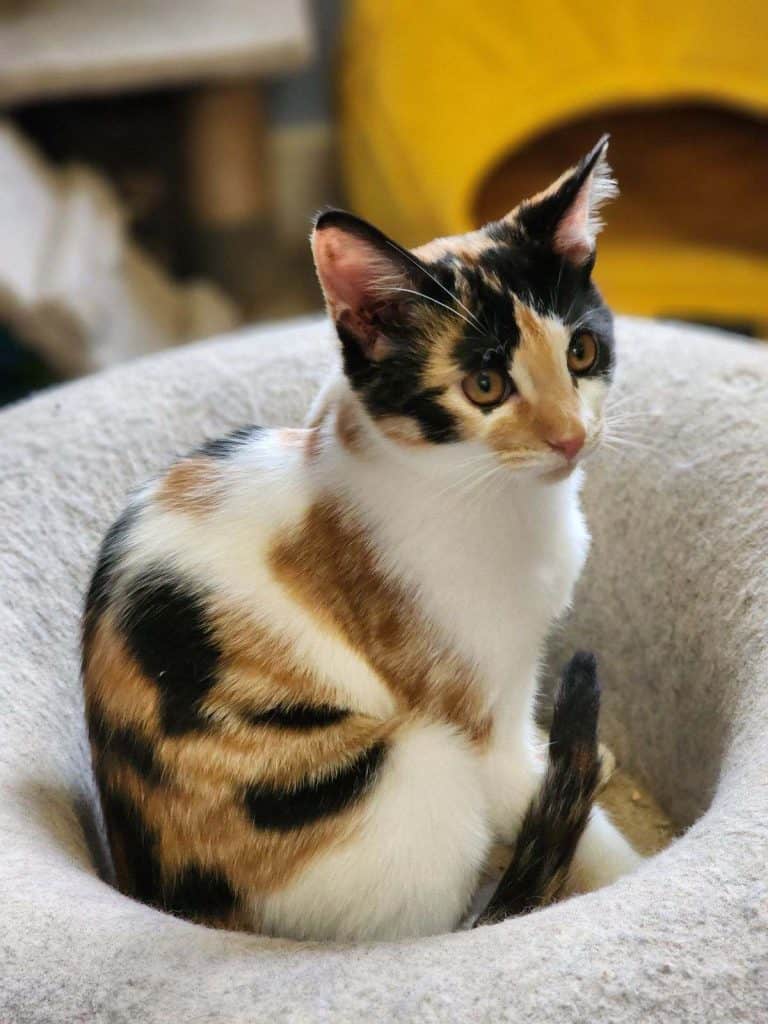 This beautiful girl was found living outside with her 3 siblings when she was 3-4 weeks old. A good Samaritan rescued them, and they have been in foster care until recently. Josie is very affectionate, playful and has the silkiest fur you’ll ever touch!