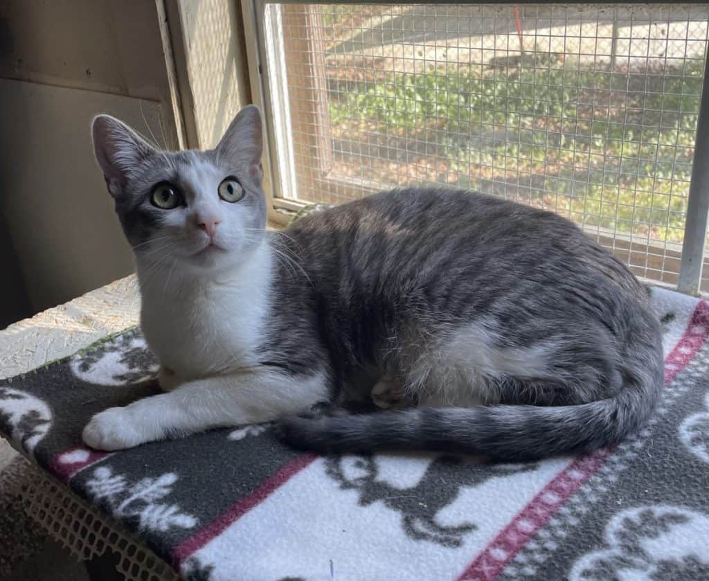 Junebug just got to the rescue and is settling in well. This beautiful girl is 8 1/2 months old, and came to us because she was being bullied by a male cat in her previous home.