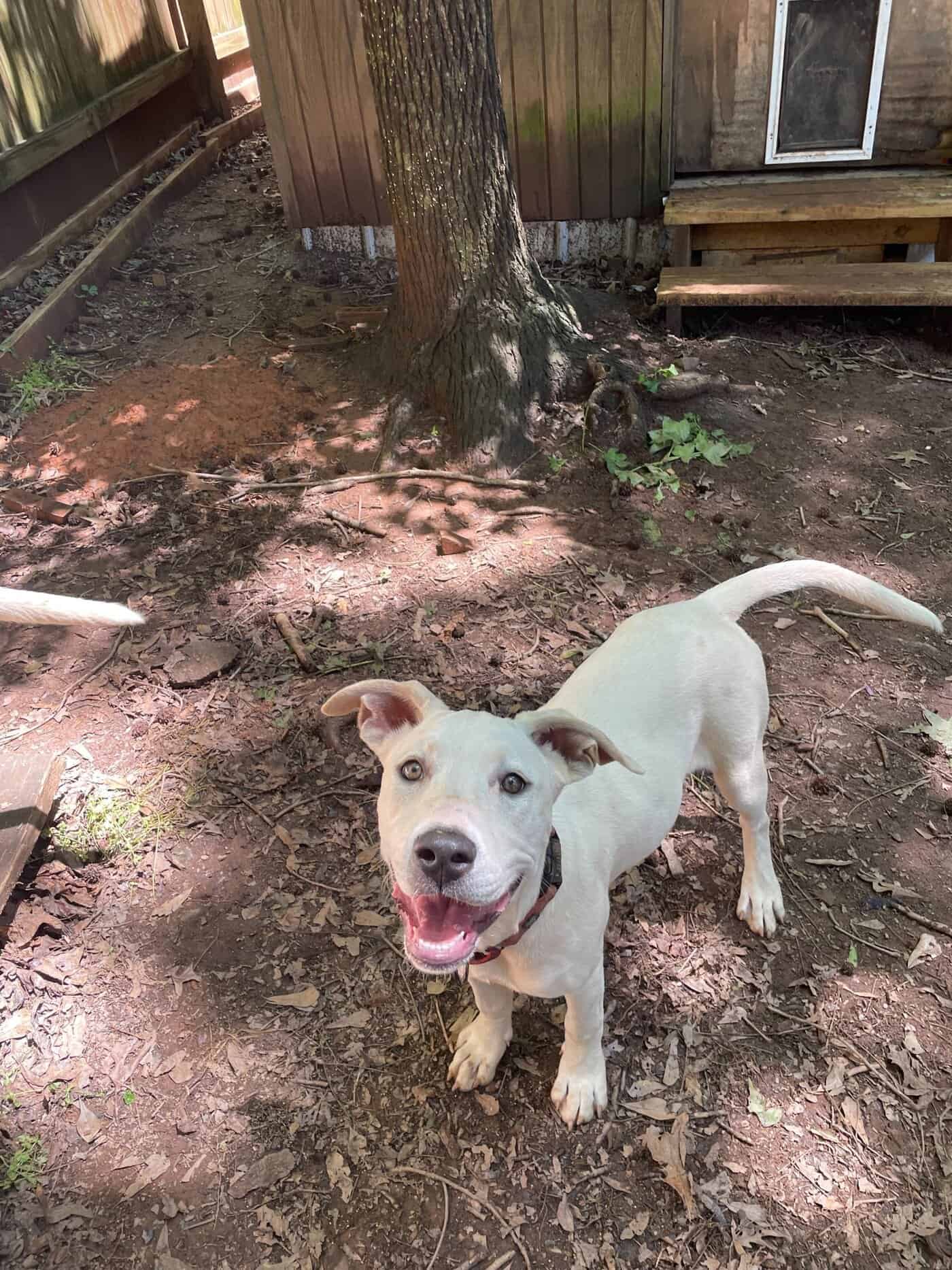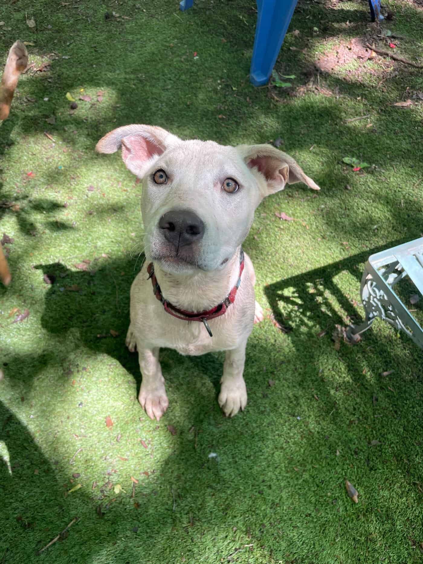 This beautiful pup is full of bounce, curiosity, and affection. She adores playtime with Boe, enjoys meeting new friends (both human and canine), and is eager to please. Pearl is smart, spunky, and soaking up every bit of kindness she’s shown.