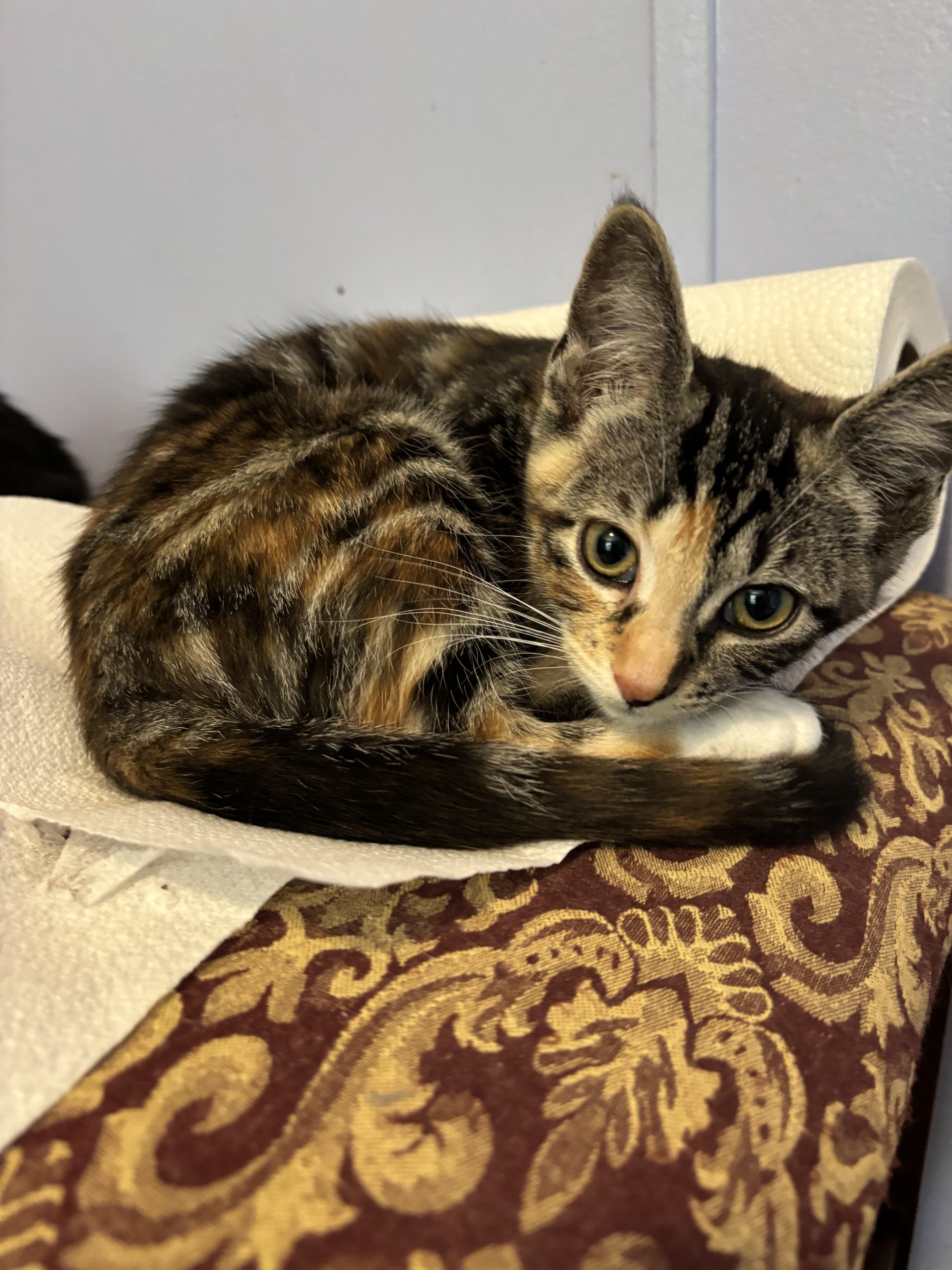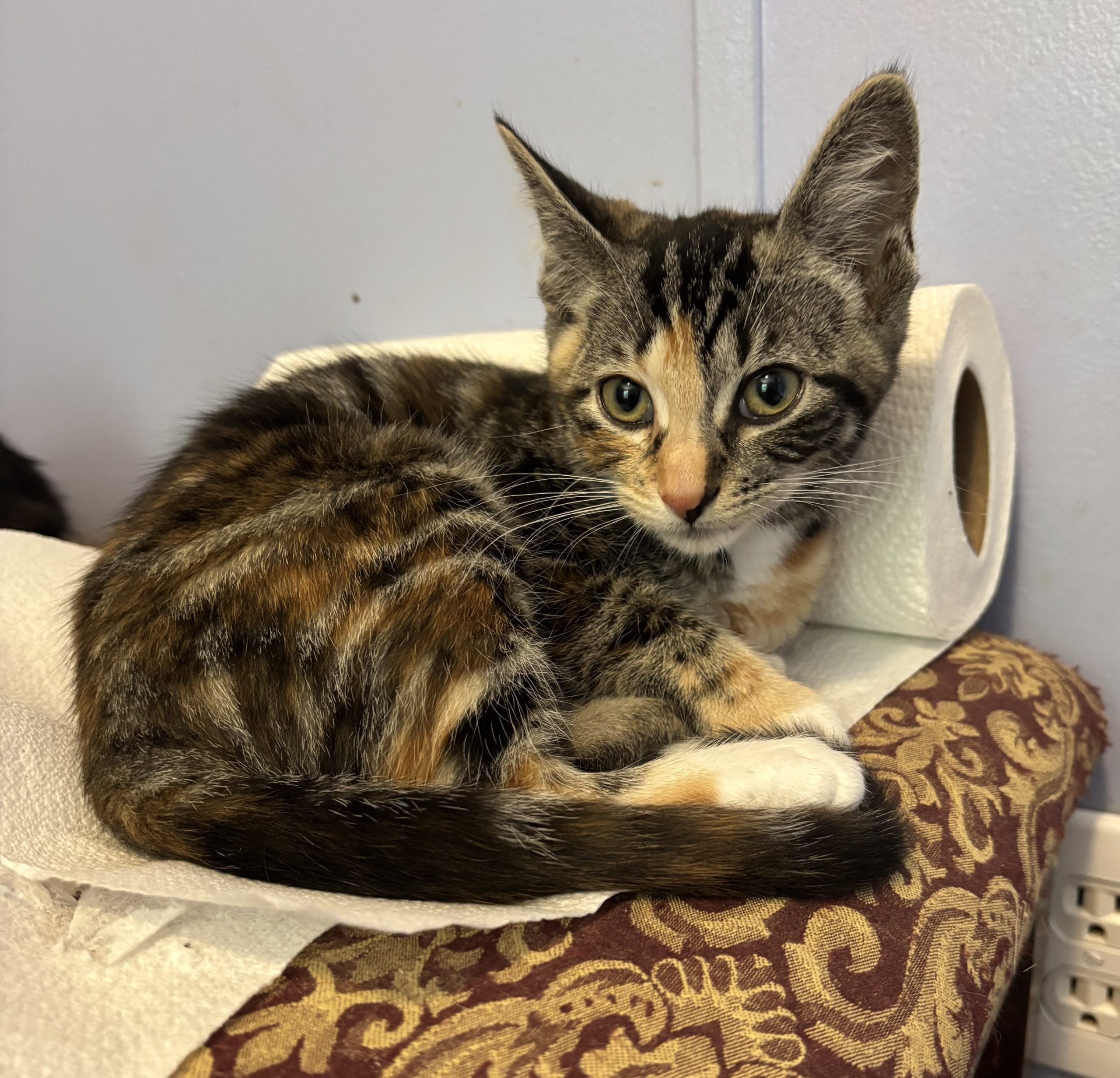 Beautiful Penelope was found as a tiny kitten living in the floor bed of a broken down truck with her siblings. She’s about four months old, very sweet and playful.