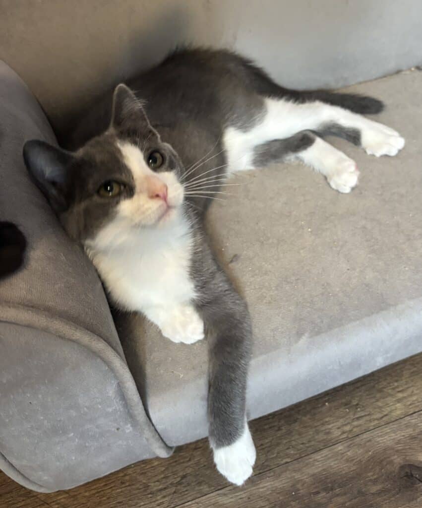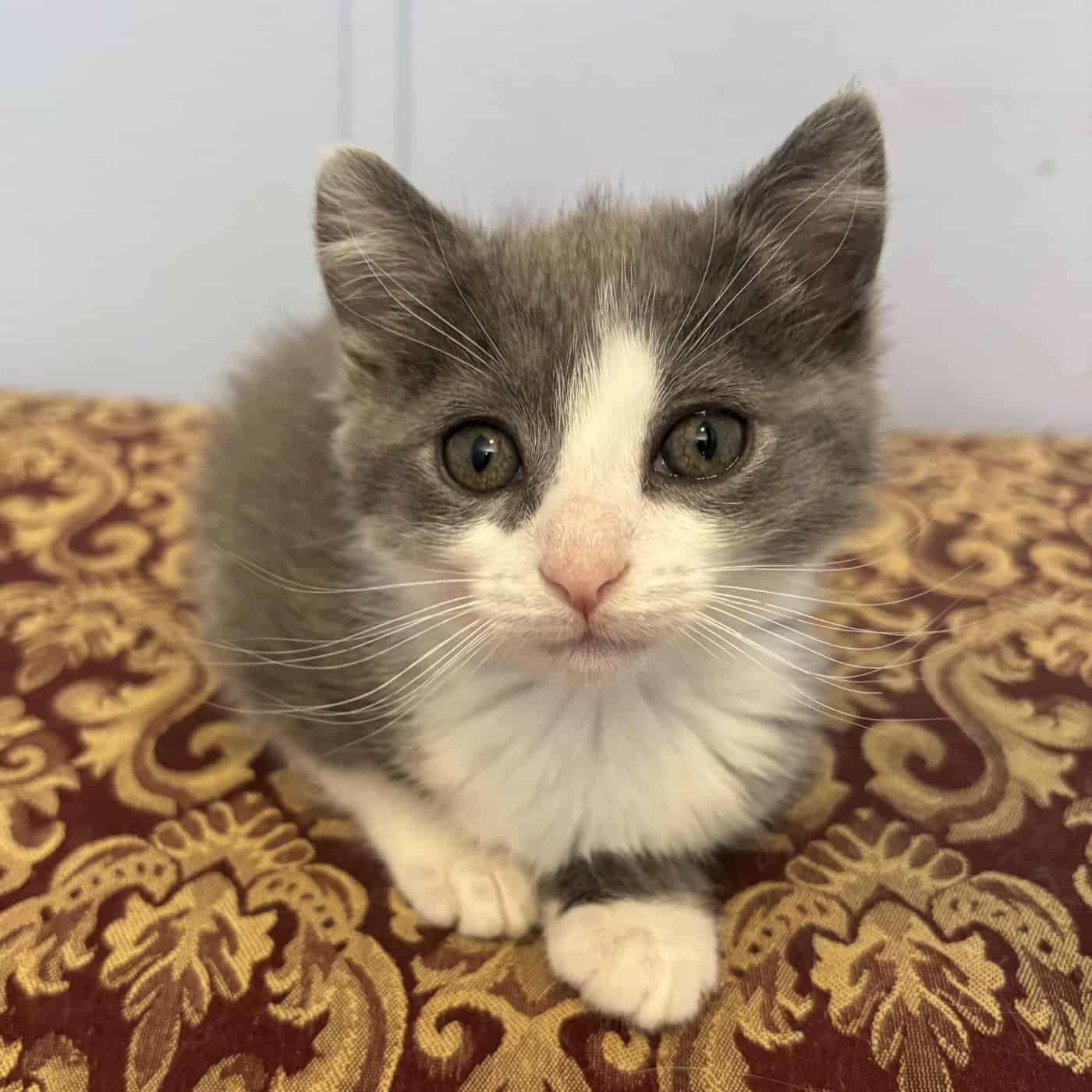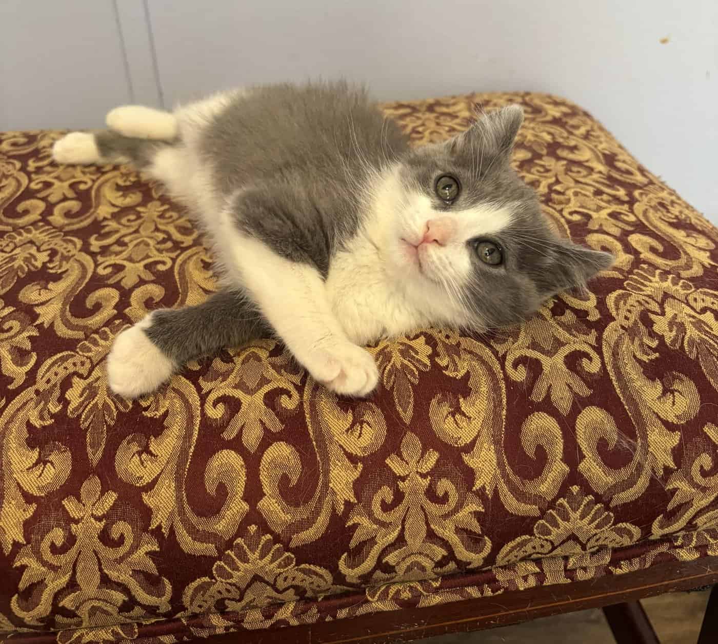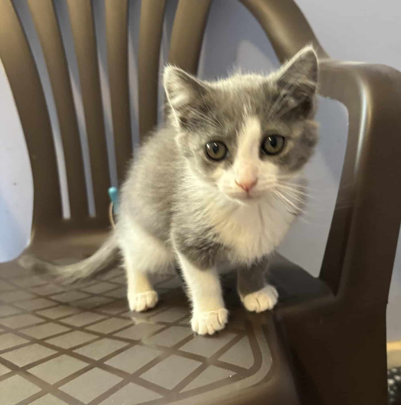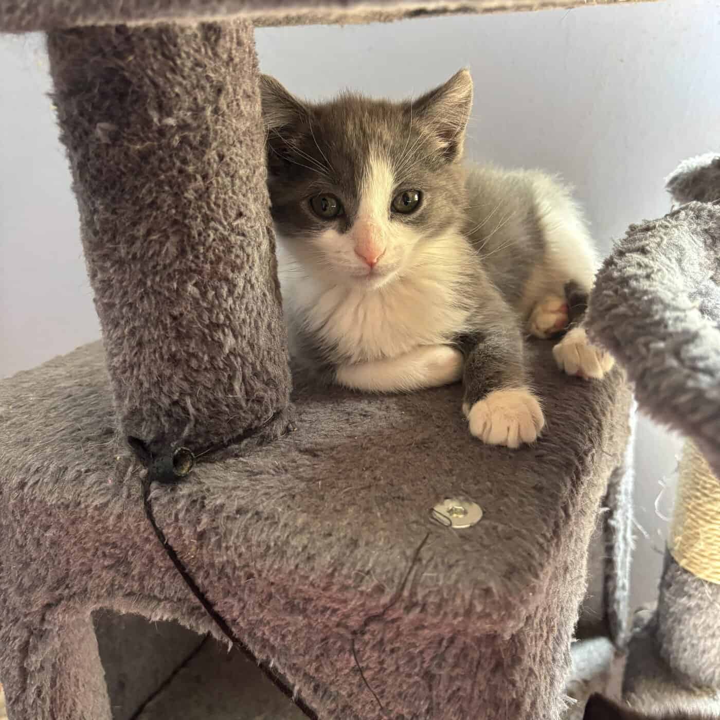 Prim was found living outside as a tiny kitten, and is about 4 months old as of 9-15-25