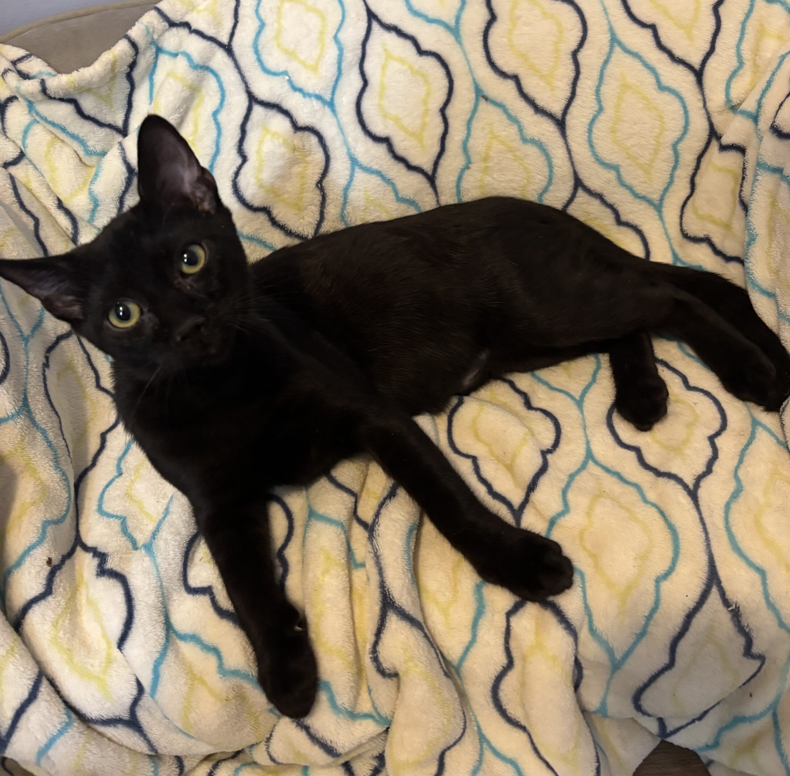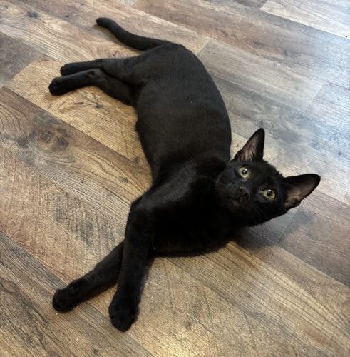 His sister Ruby is also available if you’re looking for two adorable black kitties.