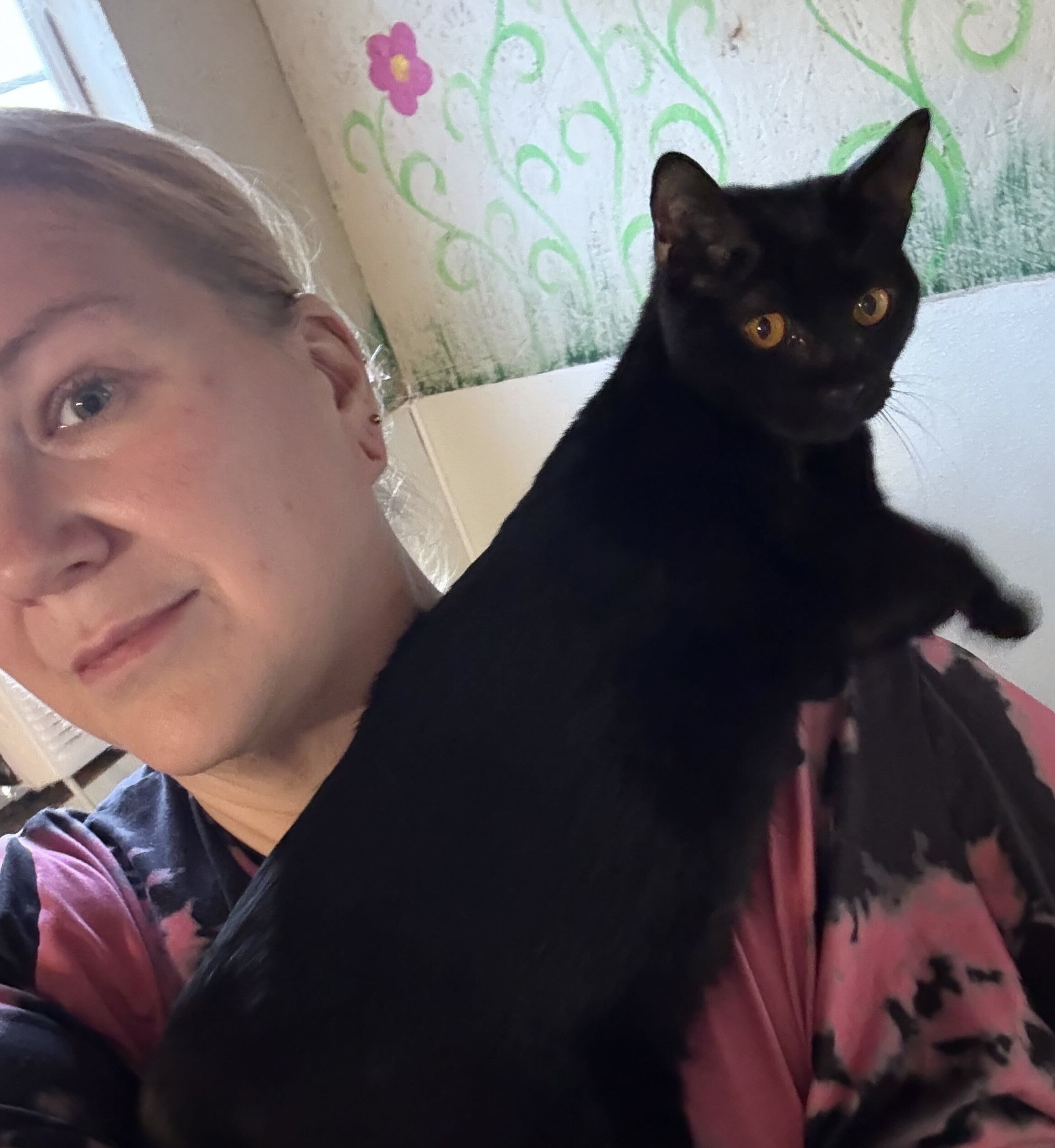 So so sweet and affectionate… That’s Ruby! About 6 months old as of 11-14-25. Found at an apartment complex with her deceased mama and littermates when she was 6 weeks old.