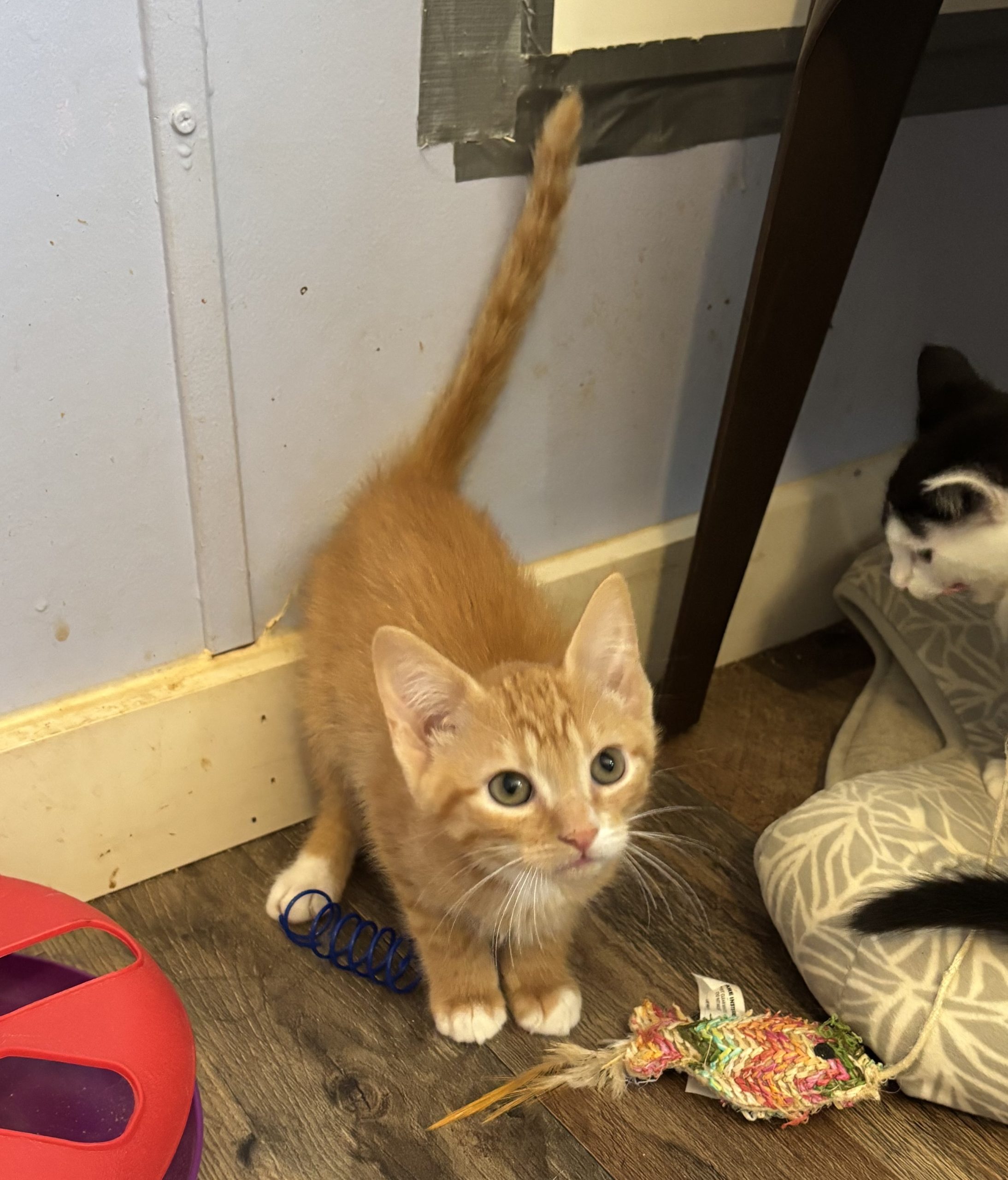 Cutie pie Theo was found as a tiny kitten living in the floor bed of a broken down truck with his siblings. He’s about four months old, very playful and energetic!
