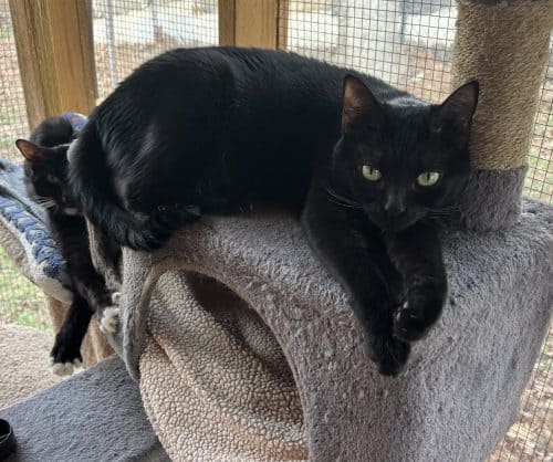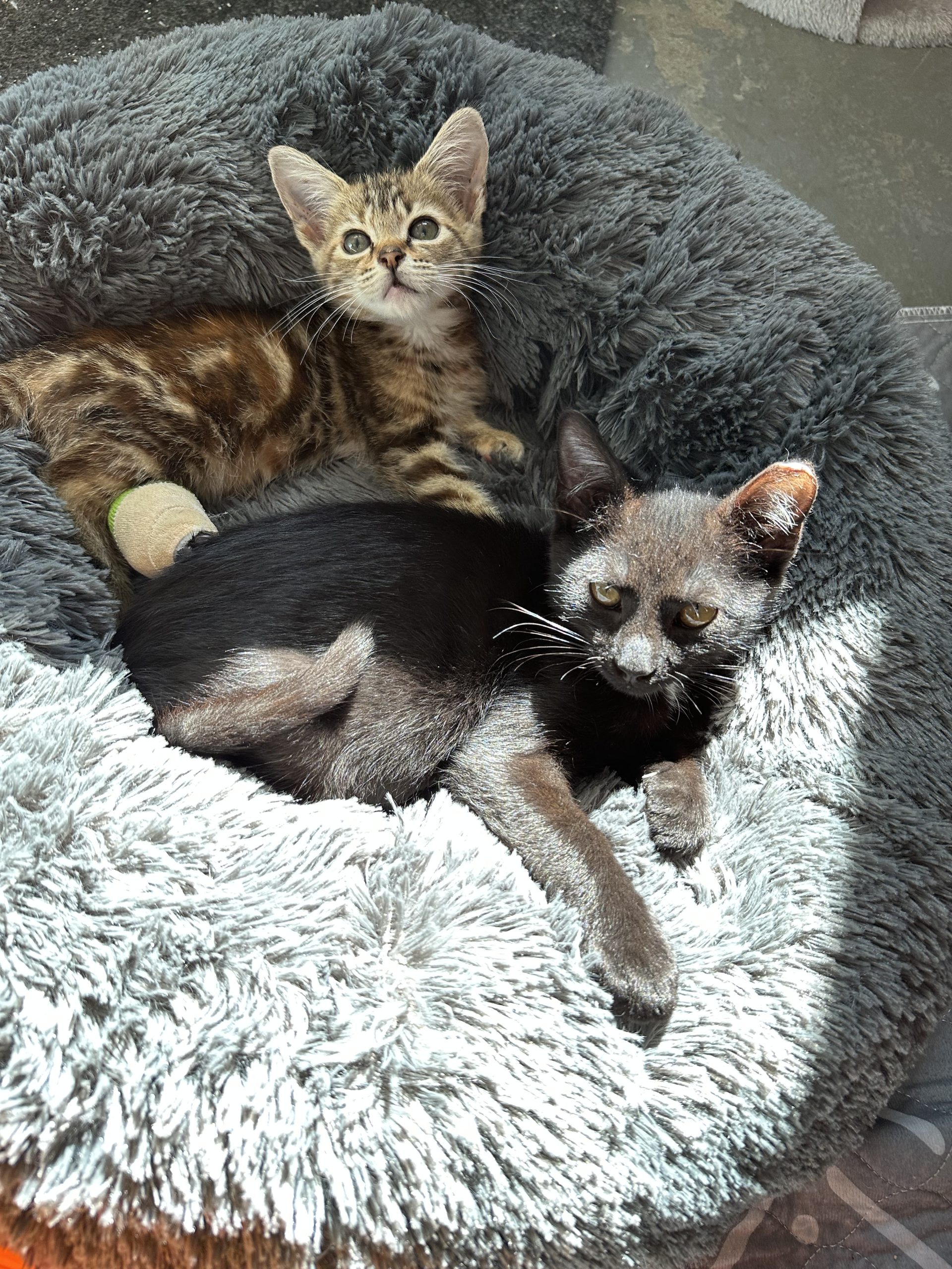 If you are looking to adopt two kitties, she and Freya (black kitty in pics) are best buddies. Freya took on the role as her “protector” when she first came to the foster group.